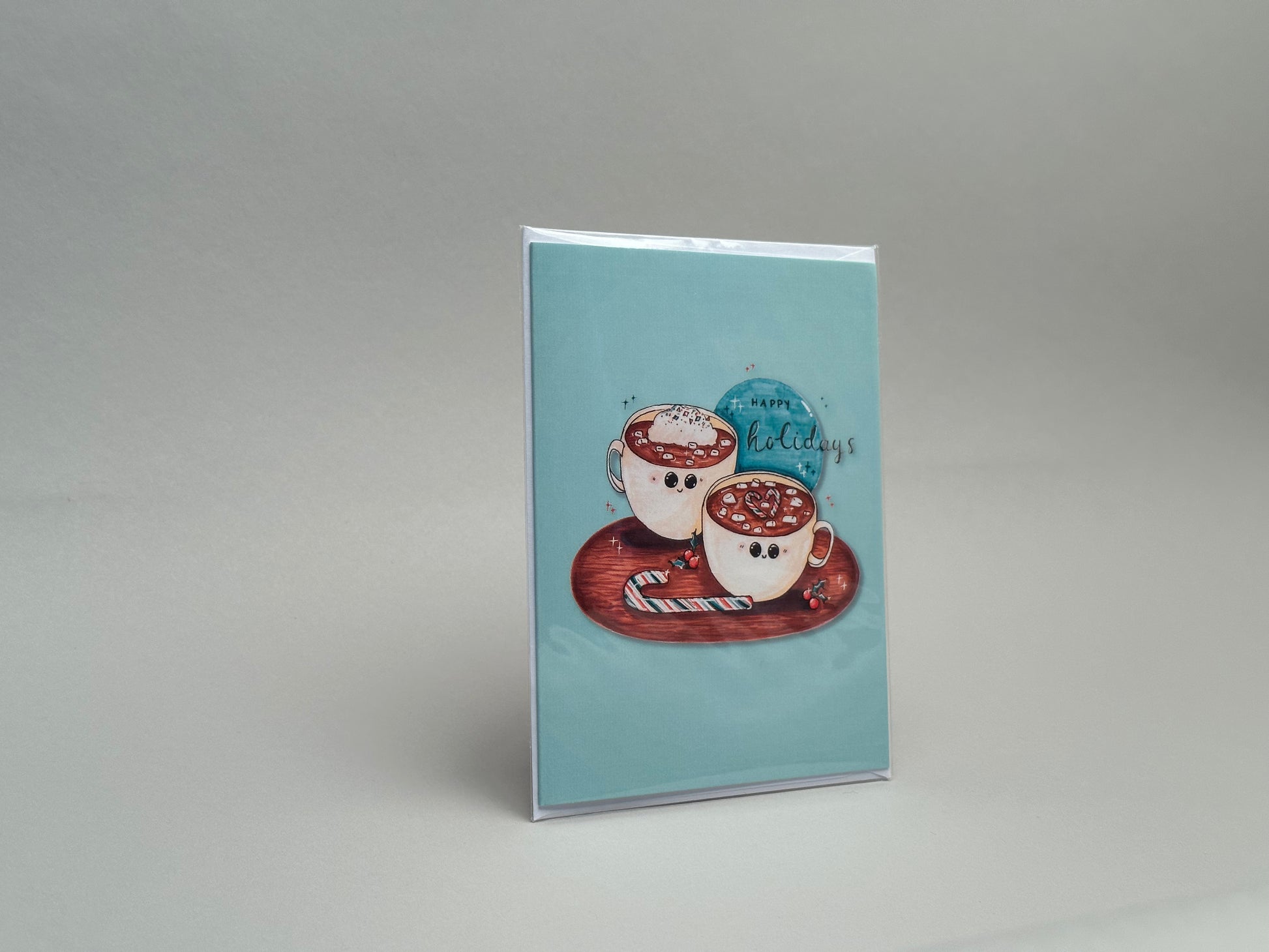 Send a warm holiday greeting with this "Hot Cocoa" greeting card. Featuring a hot cocoa-inspired design, the card is sure to warm the hearts of your family and friends. Features full colour reproduction of the hand-drawn illustration.